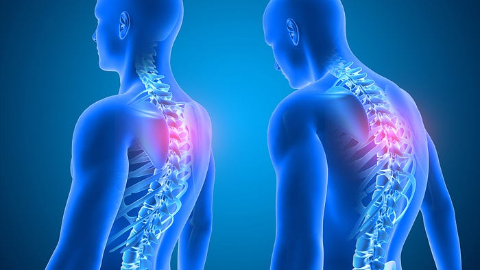 Kyphosis occurs when the spine curves forward more than normal, creating a hunched or rounded back. Causes can include: